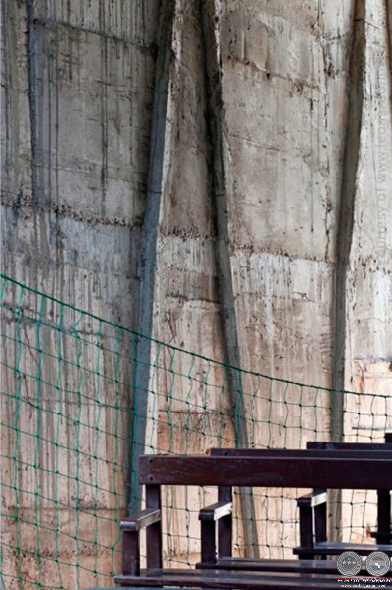 Respecto al sitio, adquirido con fondos provistos por la Iglesia y sito en la altura, es una parcela de terreno angosta, con dimensiones de lote urbano, que permite desarrollar una obra de pequeña escala o doméstica, entre medianeras, como la de cualquier vecino. Desde su frente se desciende hasta un lugar que fue utilizado como vertedero del vecindario, una depresión en la que el sol cocina la basura y desde la que esparce los aromas proletarios. De este antiguo y pobre asentamiento se rescataron dos rubros vitales para encarar la empresa: mano de obra que conocía el trabajo de concreto (oficio que ocupa a una buena cantidad de los hombres de la comunidad), y basura para usar como encofrado de obra.