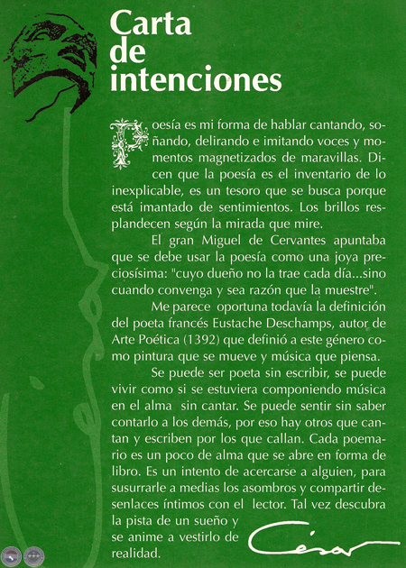 Un sentimiento de incomprensión, pero de amor a lo incomprendido, una percepción lírica y a la vez reflexiva del mundo, no sólo recorren el libro, sino que lo fundamentan. Eso solo bastaría para recomendar la lectura de este pequeño volumen. Pero hay algo más, César González Páez no sigue la moda, es fiel a su palabra, a las certezas y a las dudas que ella presenta.