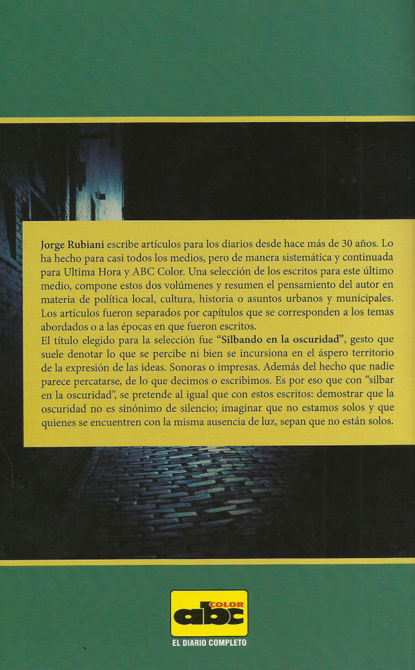 Silbamos... aunque la oscuridad persista y la posibilidad de la luz parezca inalcanzable. Para afirmar lo que somos y quienes somos, frente a la oscuridad que pretende igualarnos con el anonimato de su silencio. Silbamos en la oscuridad para sostener el ánimo que nos abandona a veces y para que la firmeza sea nuestro apoyo mientras esperamos por la luz o caminamos hacia ella. Mientras demos tropezones entre los que cayeron procurándola; o para sobrepasar a los que fueron vencidos por la desesperación y la derrota.