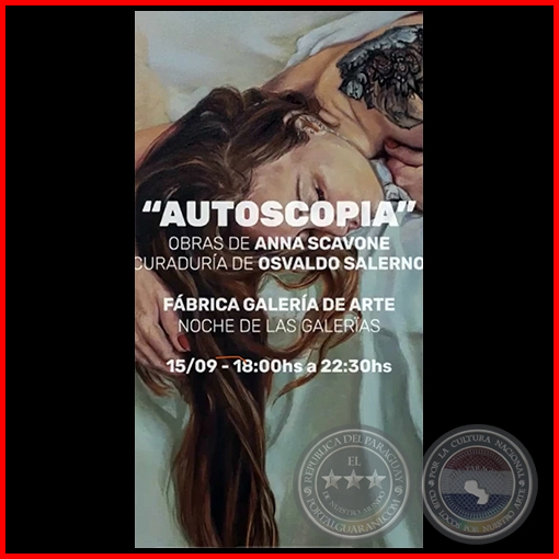 La exposición de arte se titula “Autoscopía”, palabra que proviene del griego autos (sí mismo) y skopeo (mirar), explica la artista Anna Francesca Scavone (42) y añade que es así como se denomina a la experiencia de salir del cuerpo y mirarlo como un espejo. “Es la impresión de ver el mundo desde otra perspectiva, pero con un punto de vista visual-espacial egocéntrico, es divisar la duplicación del cuerpo desde otro lugar, como un espectador, el ‘yo’ vigilante de nuestra imagen externa como interna”.