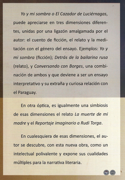 Con el agregado al título primigenio, el subtítulo de "El Cazador de Luciérnagas", pienso que tanto la intención como la alusión son correctas. ¿Por qué? Porque detrás de cada uno de los cuentos, meditaciones y relatos que ahora se publican, siempre apareció una luciérnaga imaginaria para destellar en ellos su luz, transmitida al seno de la memoria, y añadir así, a la magia de la ficción, parte del secreto del misterio y el milagro de la vida.