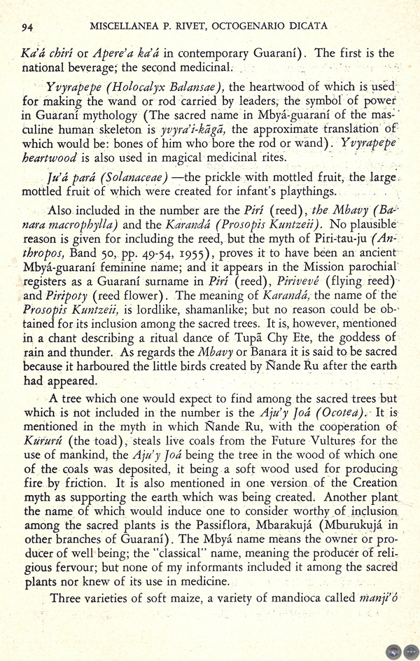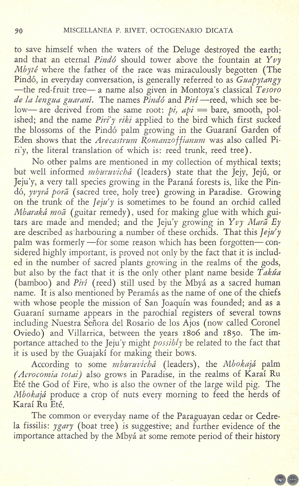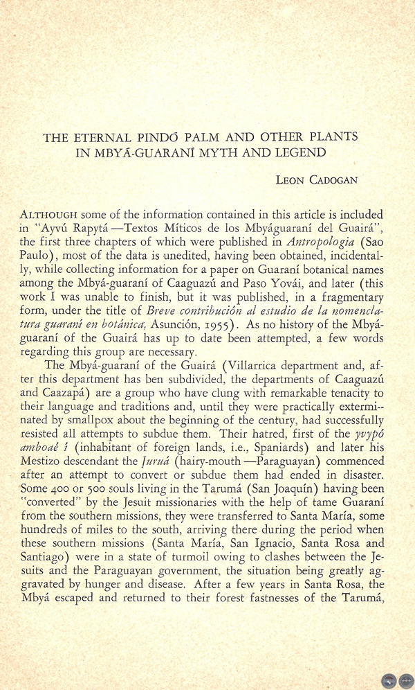 THE ETERNAL PINDÓ PALM, AND OTHER PLANTS IN MBYÁ-GUARANÍ MYTH AND LEGEND