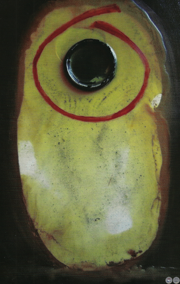 Rojos y ocres, pigmentos de oxido ferrosos, se sitúan y desplazan en el campo visual, configurando movimientos circulares, dando fuerzas, vitalidad y equilibrio a estas esferas que conforman el universo cromático y matérico de la artista.