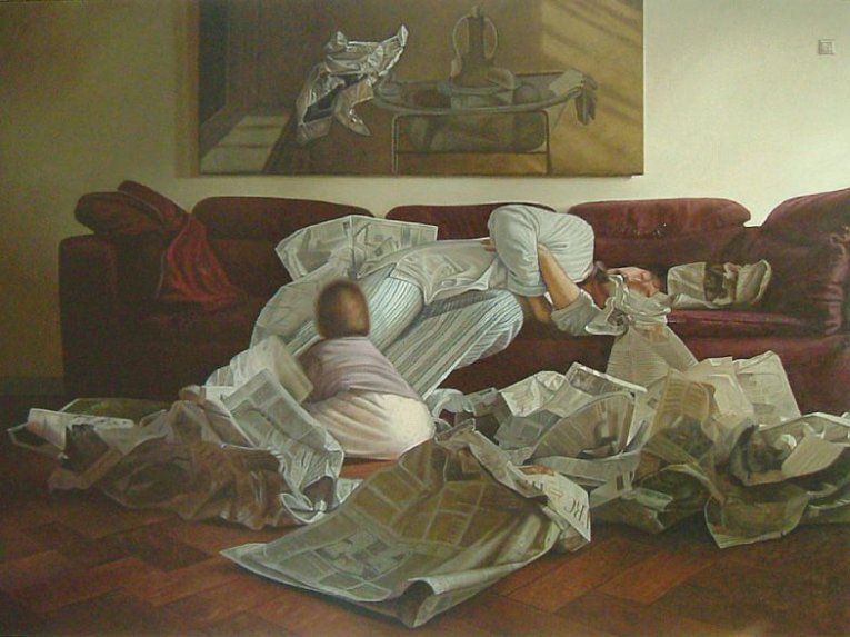 Después de muchos años de haber estado dividiendo su tiempo entre las formas y el audiovisual, Collar eligió las artes plásticas tanto para su exposición individual como para la Contrabienal. “Traje dos propuestas: una es Bollywood, en la que hay retratos de amigos que pasaron por el estudio y los he retratado. Son fotografías, pero, a su vez, hay una serie de pinturas basadas en esas fotografías... Esa lucha permanente entre ambas expresiones artísticas es lo que trato de unir y que existe desde hace tanto tiempo. Para mí, son lenguajes que se han juntado mediante el cine también. Directamente, hoy en día pienso en la fotografía como pintor y comienzo una pintura cuando la fotografía está lograda para, finalmente, dar a conocer la reproducción fotográfica de la pintura”, expresa el artista.