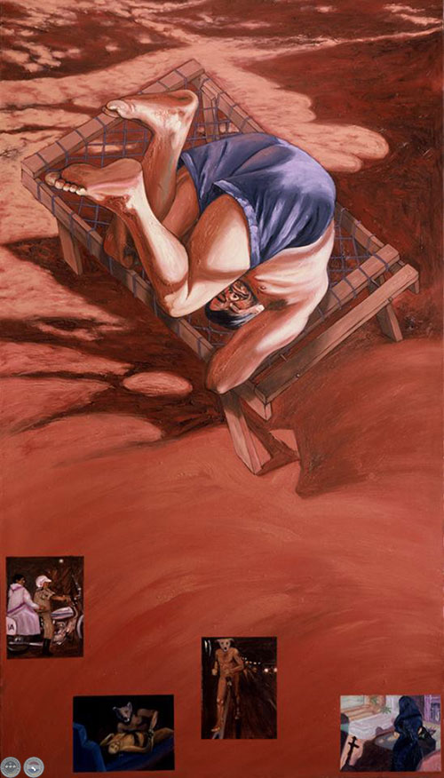 “Movimiento V” (políptico sobre la historia de un séptimo hijo varón) óleo sobre tela 43×60 cm 1996