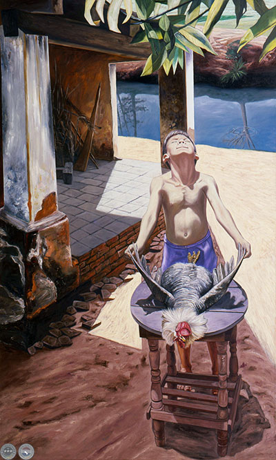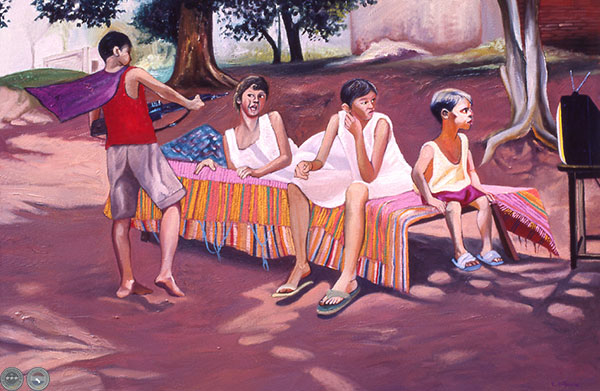 “No siempre pudimos escondernos” óleo sobre tela 40×60 cm 1996 | Colección privada, Paraguay
