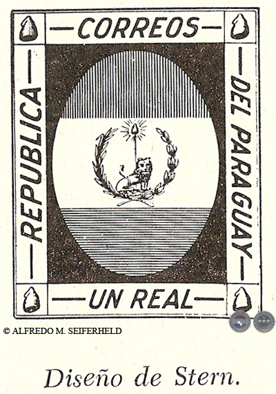En la revista francesa "Magazine Pittoresque" de 1866 escribía M. Rondot, según referencias de Charles J. Phillips: "En enero 1864 (debe ser 1854), el General Francisco Solano López pidió al Sr. Stern, grabador de París, de confeccionarle el diseño de un sello postal destinado al Paraguay, El diseño consistía en el escudo de la República. Tan pronto cómo había sido hecho el cuño, el General López llevó consigo las pruebas a Asunción y nada más se supo del asunto.