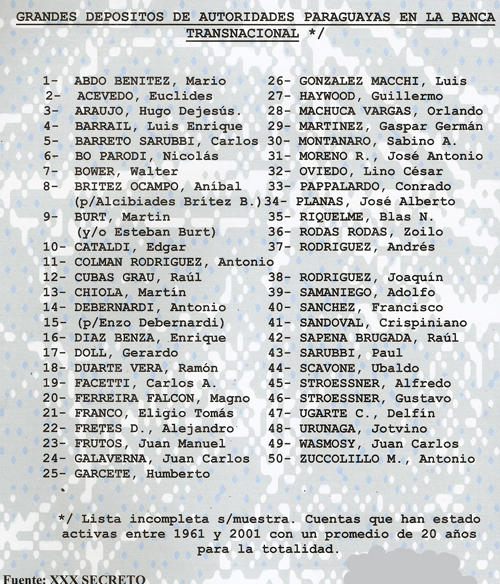 4. Grandes depósitos de autoridades paraguayas en el exterior.