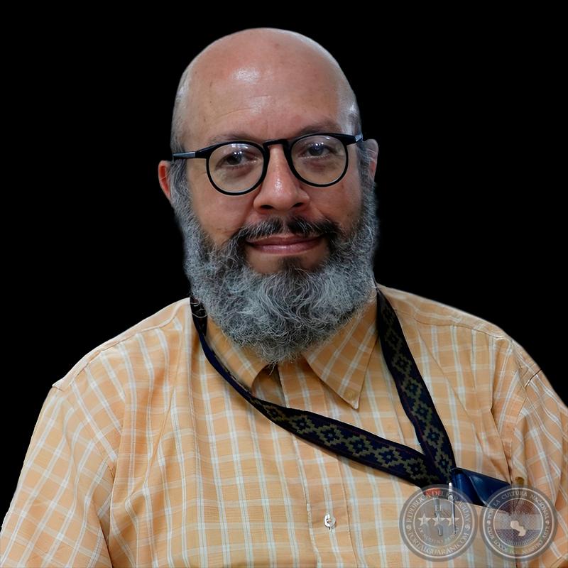 OSCAR PINEDA: Nació el 25 de enero de 1967 en Asunción del Paraguay, aunque en el seno de una tradicional familia originaria de Villeta del Guarnipitán. Diseñador Gráfico y Editorial, es funcionario antiguo del Ministerio de Educación y Cultura y presta servicio en la Dirección de Currículum de la Dirección General de Currículum, Evaluación y Orientación y en el Centro de Innovaciones e Investigación Educativa donde es uno de los responsables de la creación del mayor Banco Educativo Histórico del Paraguay. Miembro fundador y primer secretario del Club de Amigos de la Ópera Platea Lírica y actual presidente del Centro Paraguayo de Polemología, es también miembro de la Comisión Directiva de la Sociedad de Escritores del Paraguay y del PEN Club Internacional – capítulo Paraguay.