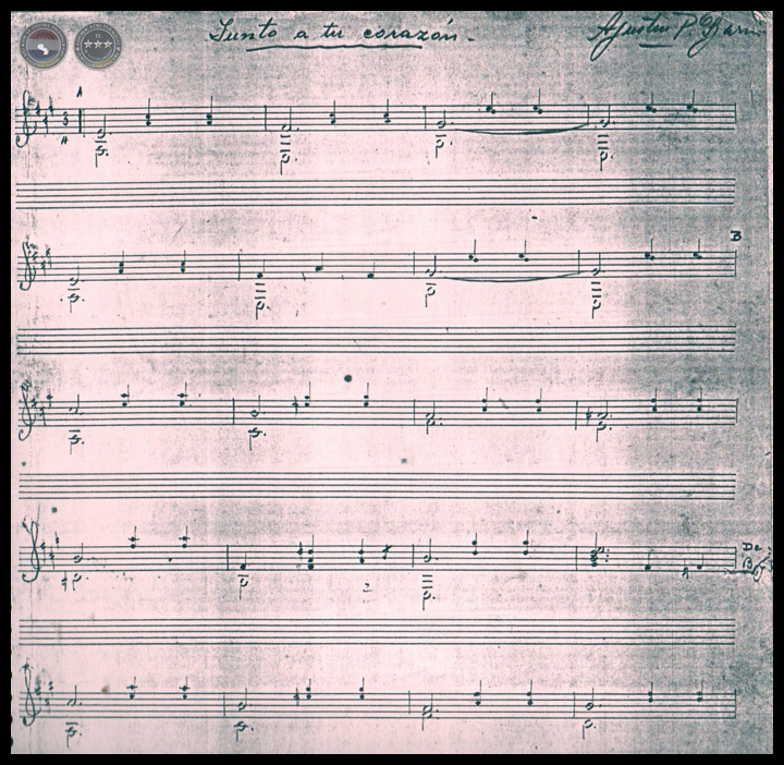 Manuscrito "JUNTO A TU CORAZÓN" de AGUSTIN PIO BARRIOS (Mangoré)