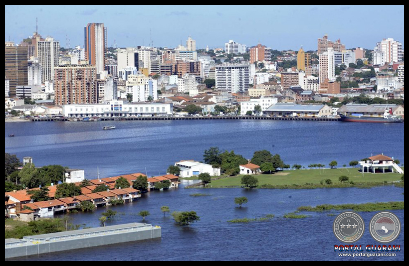 Todo un barrio ribereño yace casi por completo bajo las aguas del río Paraguay.