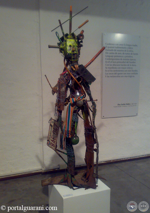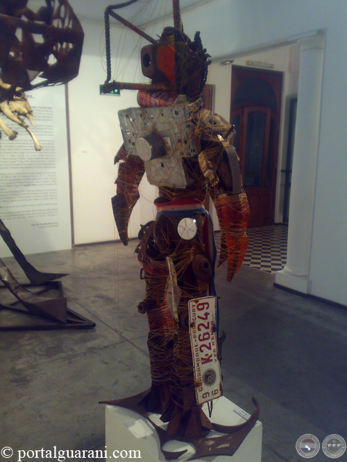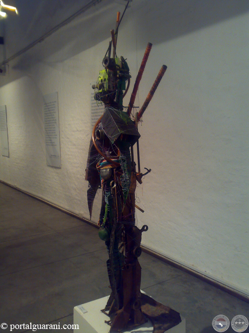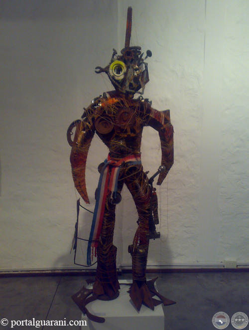 Y ya en nuestra reciente y triste historia, la cruel y feroz dictadura (1954-1989) que entronizo al tiranosaurio y sus secuaces manchando con sangre de Paraguayos la historia a través de la tortura y la muerte, nos hace recordar Fidel Fernández en sus obras “Pascuas Dolorosas” y “Exterminador”, es el otro escultor joven de veinticinco años de edad y que hoy hace su debut y que se caracteriza por trabajar sus obras sobre los tacurú del chaco.