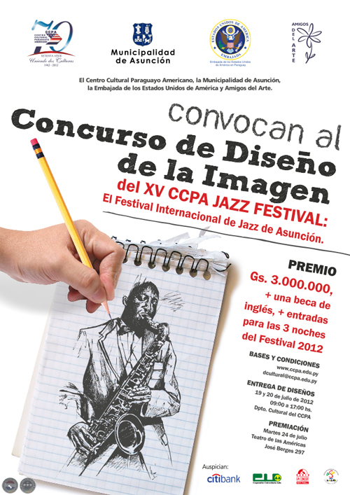 El Centro Cultural Paraguayo Americano (CCPA), la Dirección General de Cultura y Turismo de la Municipalidad de Asunción, la Embajada de los Estados Unidos de América en Paraguay y Amigos de Arte, CONVOCAN al Concurso de Diseño de la Imagen del XV CCPA JAZZ FESTIVAL: El Festival Internacional de Jazz de Asunción.