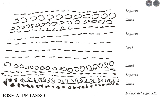 Pero este pensamiento mágico al que nos remitimos ahora está referido a un lenguaje específico, el lenguaje visual. Entre los Guaraní, éste es un lenguaje poco usado, casi olvidado; sin embargo entre los Aché, de filiación lingüística tupí-guaraní, el dibujo era tradicionalmente ejecutado en la tierra, preferentemente después de las lluvias. Se pueden encontrar en otros grupos de idéntico phylum lingüístico referencias significativas en la denominación de algunos utensilios decorados de acuerdo a abstracciones geométricas que se relacionan en el diseño y en el nombre con la apariencia de la piel de algunos animales más comunes en su hábitat. Montóya (4) refiere la "olla pintada conforme a las mallas del caimán" (jápepó jakaré); Susnik (5) cita "la piel del armadillo" (tatú piré) como llaman al trenzado de algunos cestos, y muchos otros.