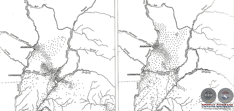 7 El censo de 1799 se encuentra en AGN, Sala VII, legajo 2636, pertenece al Fondo Andrés Lamas, legajo 33, y fue trabajado por Ernesto Maeder (1975). El de 1846 se encuentra en la sección Nueva Encuadernación del Archivo Nacional de Asunción, Paraguay, disperso para varios volúmenes y fue trabajado por John Hoyt Williams (1976). Seguramente este 0,5% en 1846 no refleje el verdadero peso de la población indígena, en muchos pueblos de indios figura sólo la población foránea y no la indígena: como por ejemplo en Yuty y en los pueblos ex jesuíticos de San Ignacio, Santa María, Santa Rosa y Santiago. Sin embargo, aunque esta población llamada foránea sea contabilizada como indígena, esta misma población no alcanzaría el 10% de la población total del Paraguay a mediados del siglo xix.