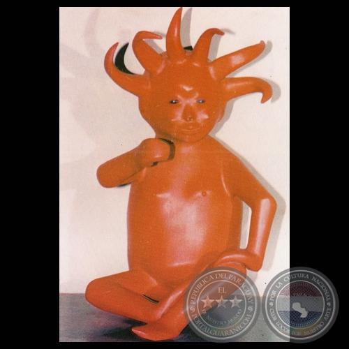 También baja como un felino los barrancos para dorar el TUJUTI (arcilla blanca). Con este material modela el indígena las urnas funerarias. Asimismo se cuenta que este duende del mundo guaraní brinda el color rojo a las flores del ceibo y da la fuerza acerada a los lapachos y urunde’y de las selvas milenarias.