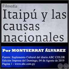 ITAIPÚ Y LAS CAUSAS NACIONALES - Por MONTSERRAT ÁLVAREZ - Domingo, 04 de Agosto de 2019