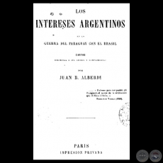 LOS INTERESES ARGENTINOS EN LA GUERRA DEL PARAGUAY CON EL BRASIL - JUAN BAUTISTA ALBERDI
