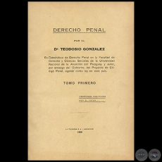 DERECHO PENAL - TOMO PRIMERO - Autor: Dr. TEODOSIO GONZÁLEZ - Año 1928