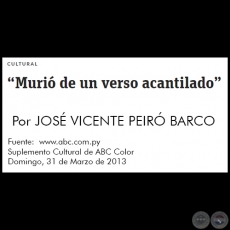 MURIÓ DE UN VERSO ACANTILADO - Por JOSÉ VICENTE PEIRÓ BARCO - ...