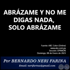 ABRÁZAME Y NO ME DIGAS NADA, SOLO ABRÁZAME - Por BERNARDO NERI ...