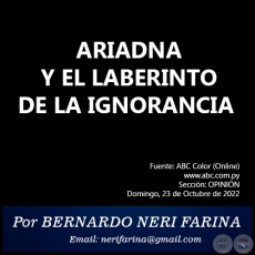ARIADNA Y EL LABERINTO DE LA IGNORANCIA - Por BERNARDO NERI FARIN...