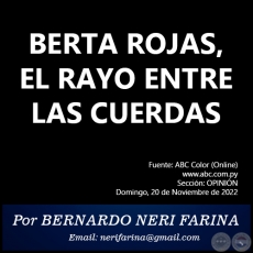 BERTA ROJAS, EL RAYO ENTRE LAS CUERDAS - Por BERNARDO NERI FARINA...