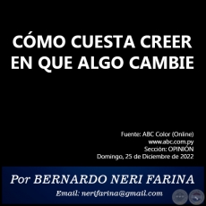 CÓMO CUESTA CREER EN QUE ALGO CAMBIE - Por BERNARDO NERI FARINA ...