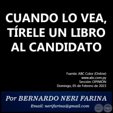 CUANDO LO VEA, TÍRELE UN LIBRO AL CANDIDATO - Por BERNARDO NERI ...