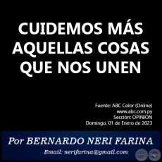 CUIDEMOS MÁS AQUELLAS COSAS QUE NOS UNEN - Por BERNARDO NERI FAR...