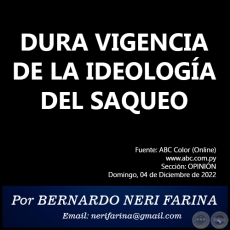 DURA VIGENCIA DE LA IDEOLOGÍA DEL SAQUEO - Por BERNARDO NERI FAR...