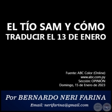 EL TÍO SAM Y CÓMO TRADUCIR EL 13 DE ENERO - Por BERNARDO NERI F...