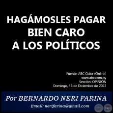 HAGÁMOSLES PAGAR BIEN CARO A LOS POLÍTICOS - Por BERNARDO NERI ...
