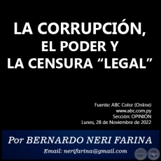LA CORRUPCIÓN, EL PODER Y LA CENSURA “LEGAL” - Por BERNARDO ...