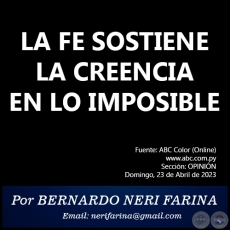 LA FE SOSTIENE LA CREENCIA EN LO IMPOSIBLE - Por BERNARDO NERI FA...