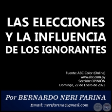 LAS ELECCIONES Y LA INFLUENCIA DE LOS IGNORANTES - Por BERNARDO N...