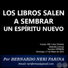 LOS LIBROS SALEN A SEMBRAR UN ESPÍRITU NUEVO - Por BERNARDO NERI...