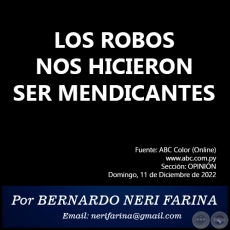 LOS ROBOS NOS HICIERON SER MENDICANTES - Por BERNARDO NERI FARINA...