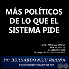 MÁS POLÍTICOS DE LO QUE EL SISTEMA PIDE - Por BERNARDO NERI FAR...