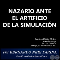 NAZARIO ANTE EL ARTIFICIO DE LA SIMULACIÓN - Por BERNARDO NERI F...