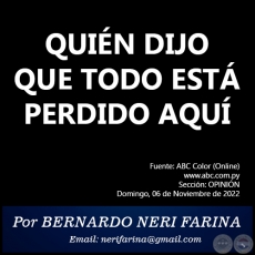 QUIÉN DIJO QUE TODO ESTÁ PERDIDO AQUÍ - Por BERNARDO NERI FARI...