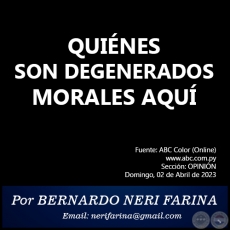 QUIÉNES SON DEGENERADOS MORALES AQUÍ - Por BERNARDO NERI FARINA...
