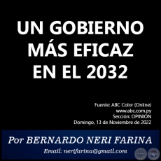 UN GOBIERNO MÁS EFICAZ EN EL 2032 - Por BERNARDO NERI FARINA - D...