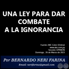 UNA LEY PARA DAR COMBATE A LA IGNORANCIA - Por BERNARDO NERI FARI...