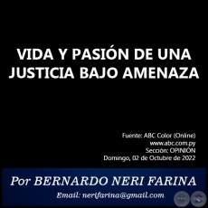 VIDA Y PASIÓN DE UNA JUSTICIA BAJO AMENAZA - Por BERNARDO NERI F...