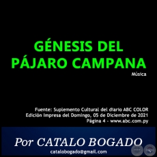 GÉNESIS DEL PÁJARO CAMPANA - Por CATALO BOGADO - Domingo, 05 de...