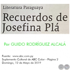 RECUERDOS DE JOSEFINA PLÁ - Por GUIDO RODRÍGUEZ ALCALÁ - Domin...