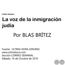 LA VOZ DE LA INMIGRACIÓN JUDÍA - Por BLAS BRÍTEZ - Sábado, 16...