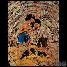 PELEA CALLEJERA DE NIÑOS - Monocopia acuarelada - LEONOR CECOTTO