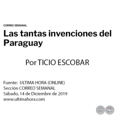 LAS TANTAS INVENCIONES DEL PARAGUAY - Por TICIO ESCOBAR - Sábado...